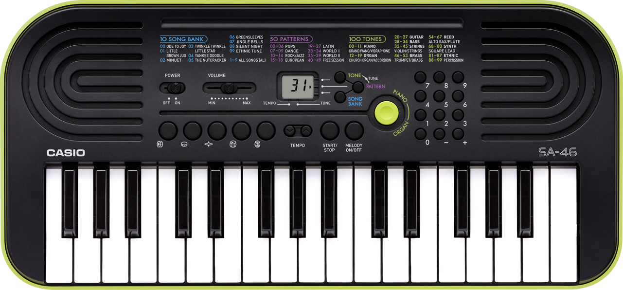 Az készülék 32 mini billentyűvel van felszerelve gyermekek számára. 100 különböző hangszínt, 50 ritmust és 10 bemutató dalt tartalmaz. A gyerekek nagyszerű csapattársat találnak benne, így a gyermekszoba szerves részévé válik.