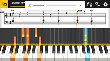 A különböző okos eszközökön megjeleníthető virtuális billentyűzettel megtanulhat lejátszani egy dalt hangszer nélkül, egy 3 lépcsős oktatási anyag, és egy görgethető billentyű leírás segítségével. Az értékelési funkció folyamatosan biztosítja az Ön támogatását, elemzi és összegzi a teljesítményét, majd a végén tanácsokkal látja el.