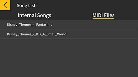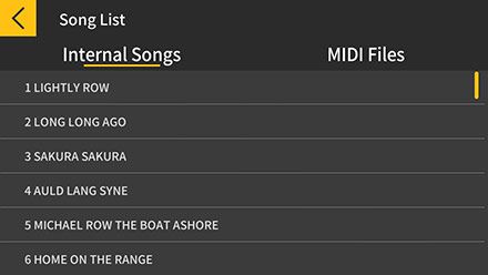 Játssza le az előre beprogramozott zeneszámokat, vagy adjon hozzá egy saját műsorszámot egy MIDI fájlból. Chordana jegyzeteket készít egy MIDI számból, felismeri az akkordokat és lehetővé teszi, hogy mindkét kezével lejátssza a hangszeren.