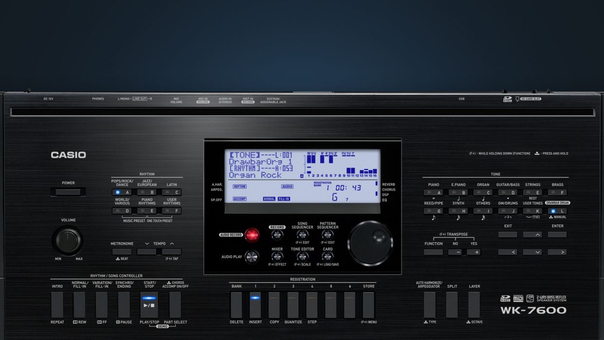 A WK-7600 a hangszerkesztés és -finomítás szinte kimeríthetetlen kreatív tárházát kínálja. A High-Grade sorozat csúcsmodelljeként egy igazi mindenest kaphat, mely ritmus és dal sequencert, DSP effeketeket, hangszínszerkesztőt, 32 csatornás mixert és arpeggiatort is rejt magában. A hang és ritmusgép mixerének faderei - illetve a drawbar orgona drawbar-jai - már csak a hab a tortán.